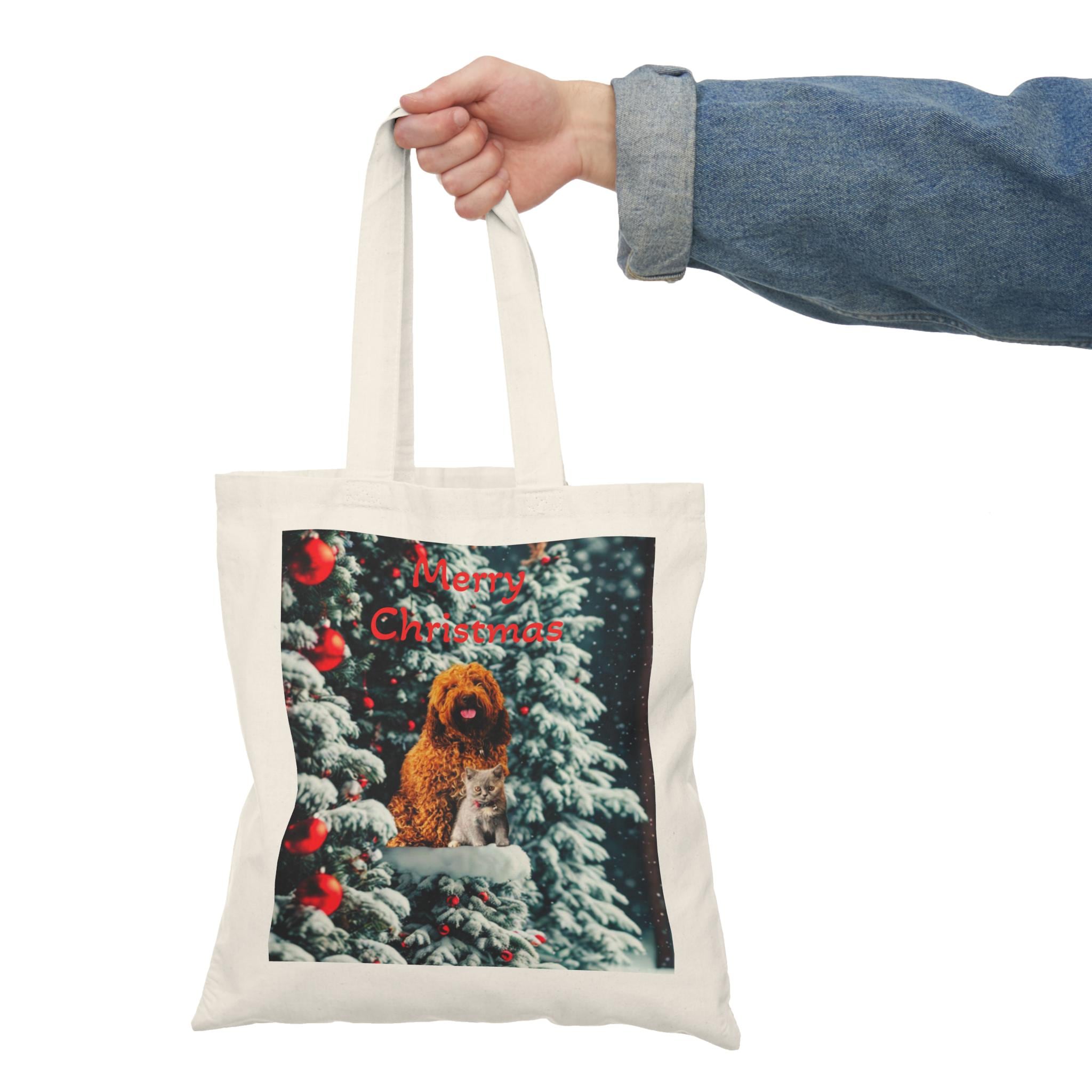 This natural cotton tote carries a warm, homey vibe—lightweight but sturdy, it feels like a cozy companion for everyday errands and seasonally spirited outings. One side shows a snowy holiday scene with a fluffy dog and kitten tucked into a wreath of pine and red ornaments; the reverse reads “Best Friend’s Forever” in a soft, handwritten style. Use it to tuck in groceries, library books, or a blanket for a walk through crisp winter air. The unbleached canvas and vibrant double-sided print let your love of pets and holiday nostalgia travel with you, quietly drawing smiles at markets, holiday gatherings, and afternoon coffee stops.