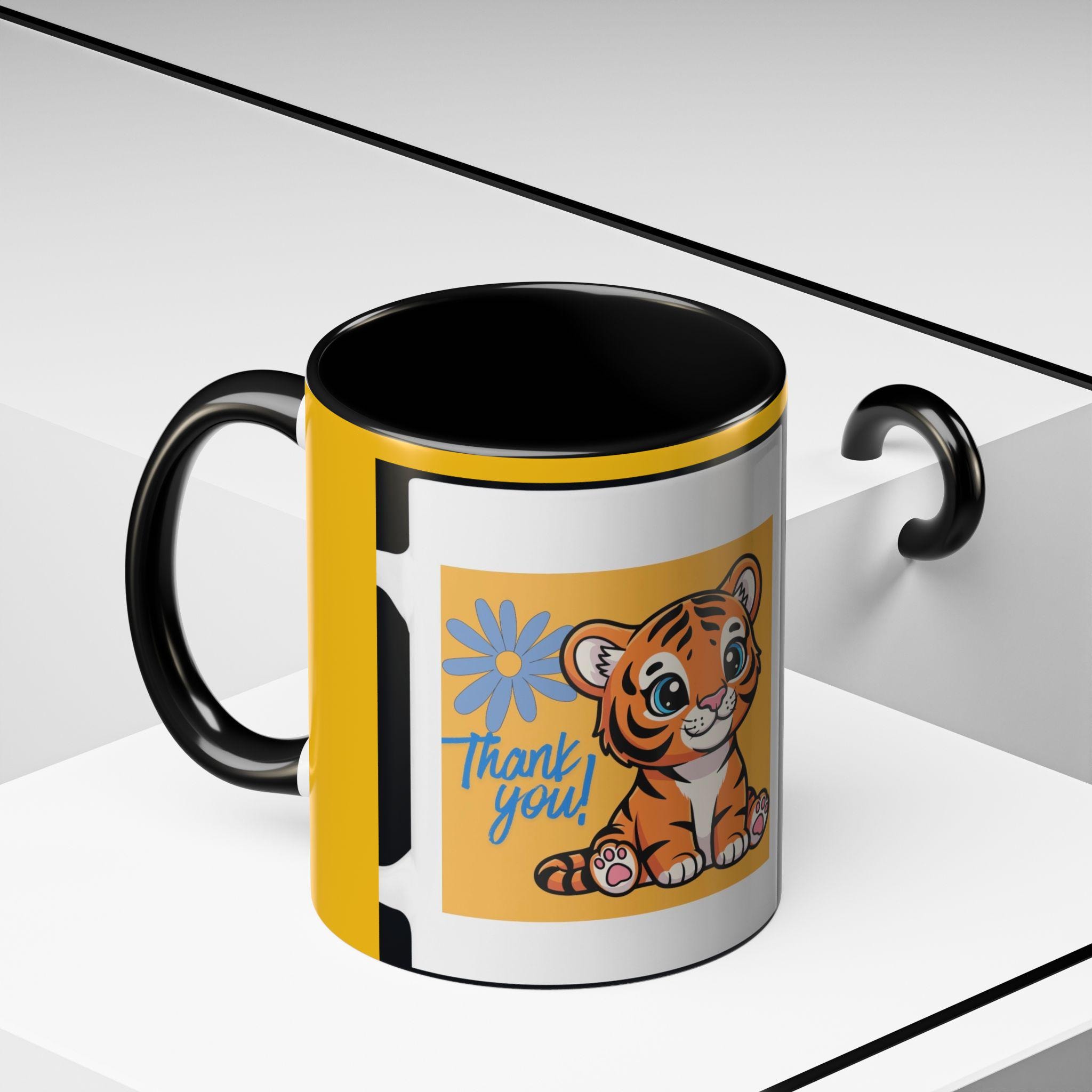 Coffee Ceramic Mug Beautiful Elegant Cartoon Tiger Mug | Accent Coffee Mug, Yellow Black Interior (11oz, 15oz) , Gift Ideas