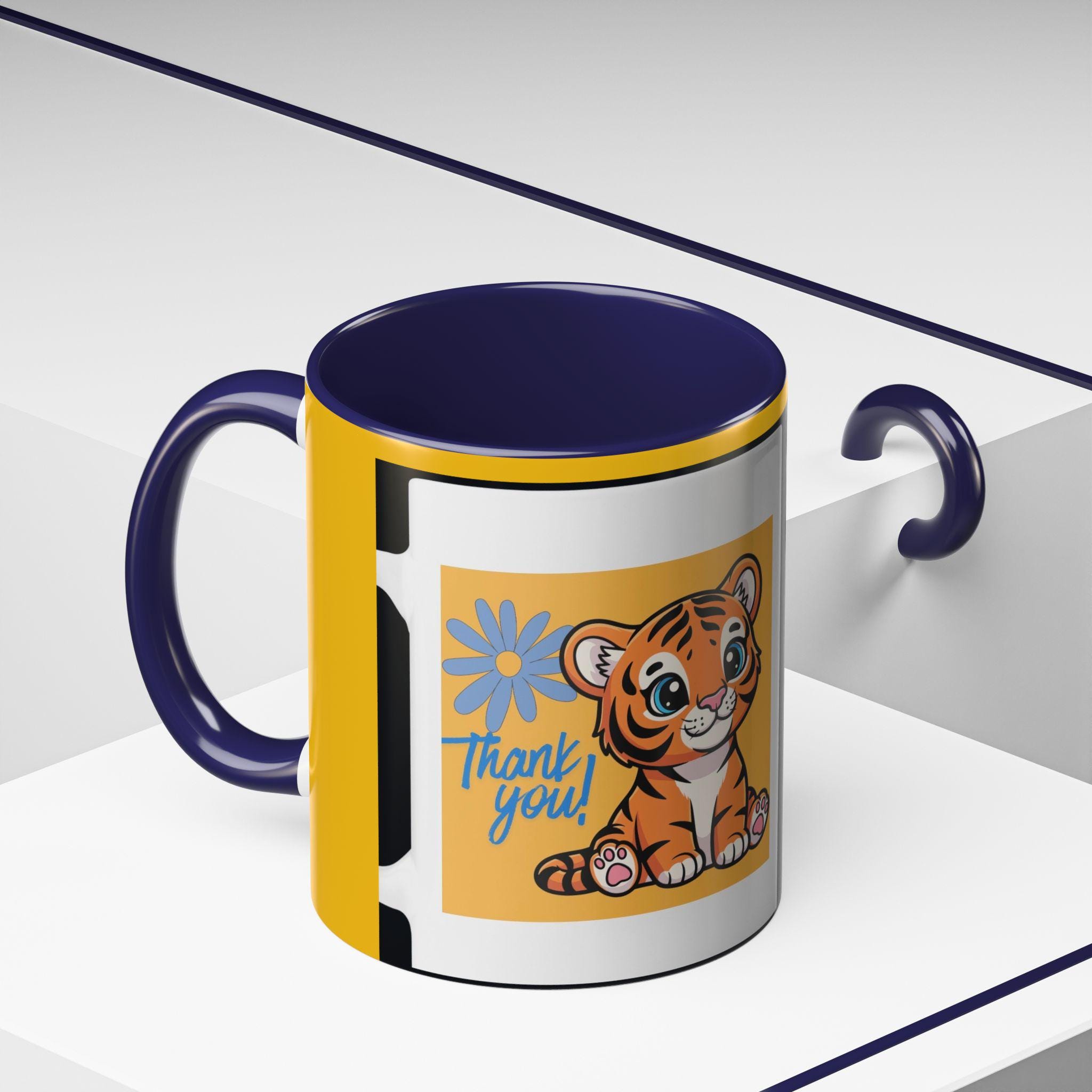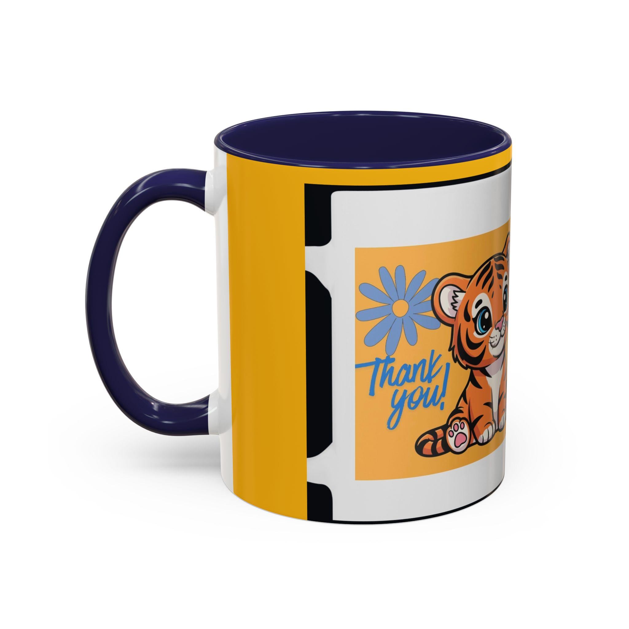 Bright, cheerful, and just a little playful — this ceramic mug brings a touch of warmth to slow mornings and busy desks alike. A glossy yellow wrap frames an adorable illustrated tiger cub, its wide eyes and tiny paws inviting a smile with every sip. The colored interior and handle add bold contrast that makes the design pop, while the sturdy C-handle feels familiar and comfortable in hand. Use it for morning coffee, midday tea, or as a little pick-me-up during late-night work. It sits easily alongside sketchbooks, nursery shelves, or a sunny kitchen corner, adding personality wherever you place it.