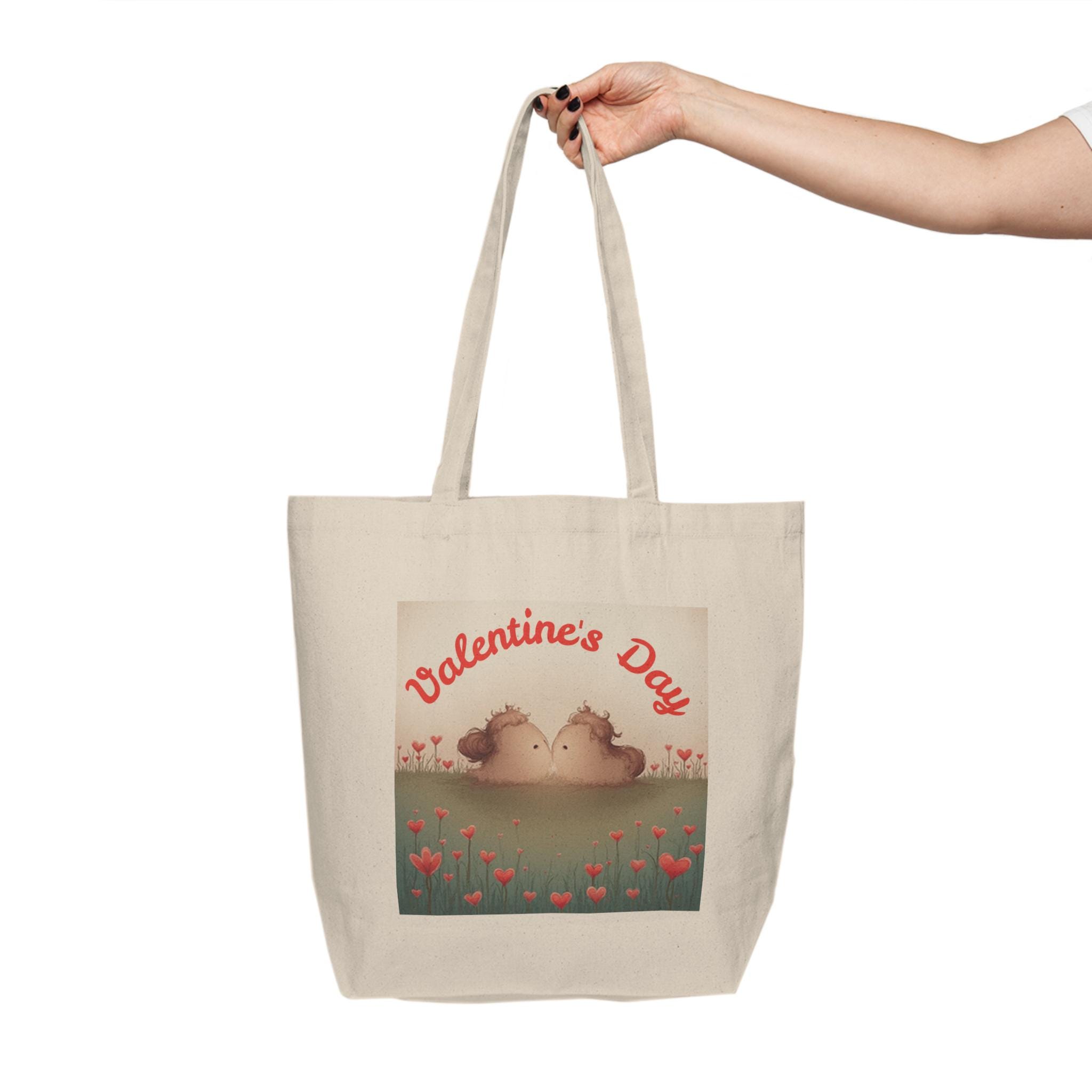 Valentine's Day Hedgehogs Canvas Tote | Romantic Heart Flower Meadow